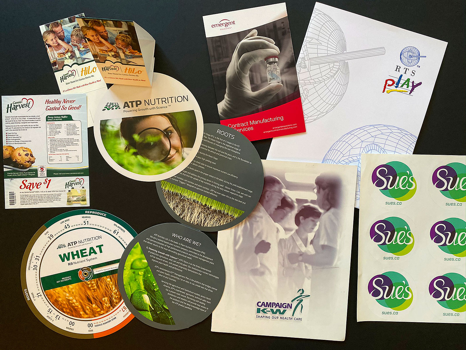 Richardson/Canola Harvest coupons, advertising & packaging, Emergent BioSolutions & ATP Nutrition.